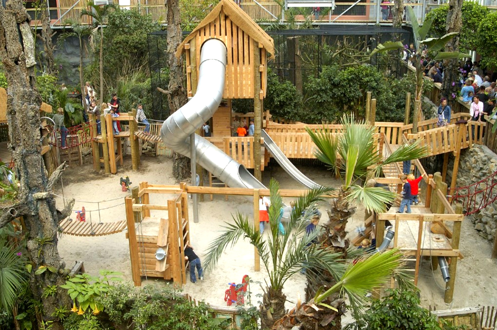 Vanaf de parkeerplaats leiden twee poorten naar de ingang van het park . Met kinderwagen/rolstoel kun je het beste de linkerpoort nemen, dan kom je via een geasfalteerde weg bij de ingang uit. Mensen die slecht ter been zijn mogen bij de ingang afgezet worden, de auto kunt u daarna op de grote parkeerplaats zetten.